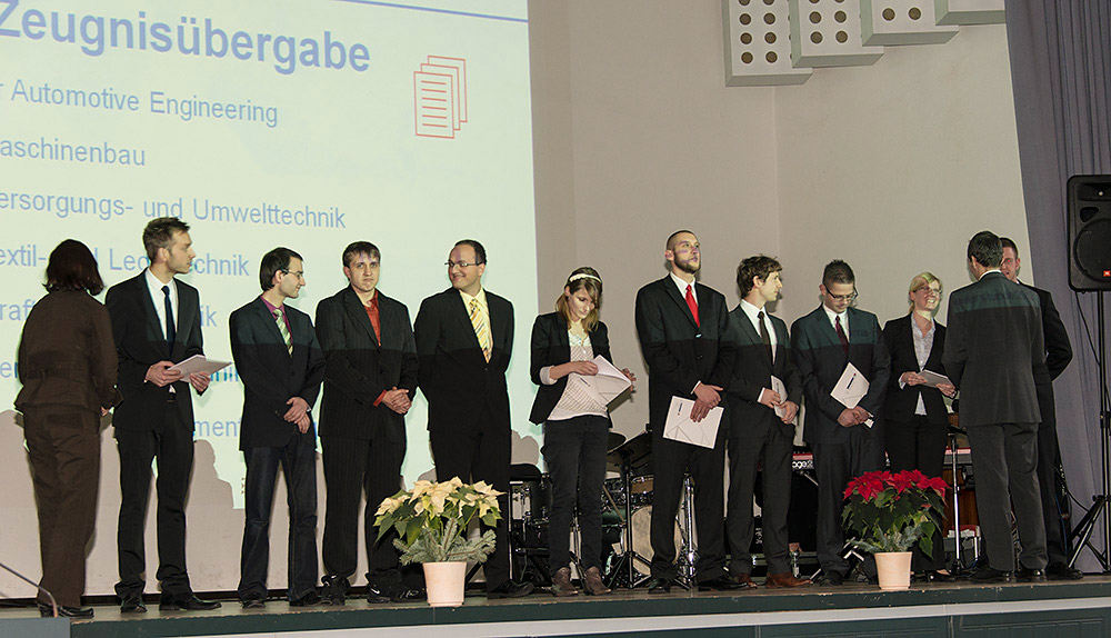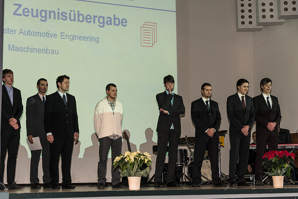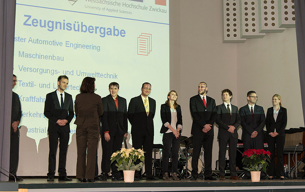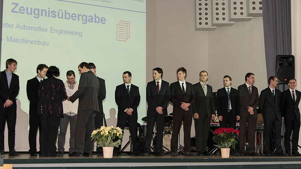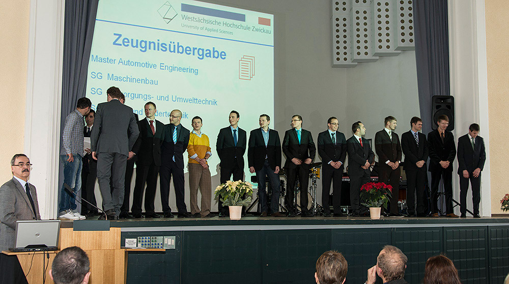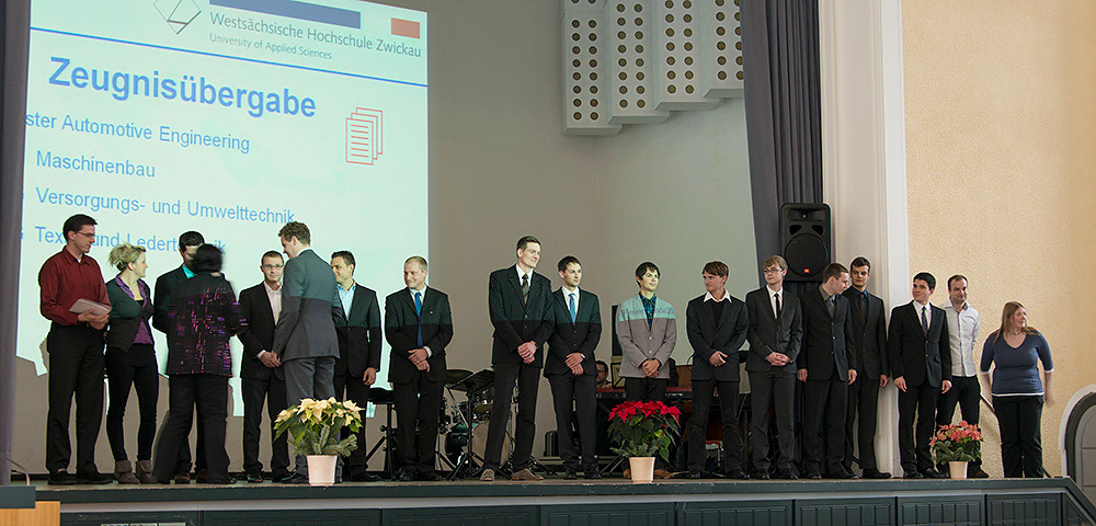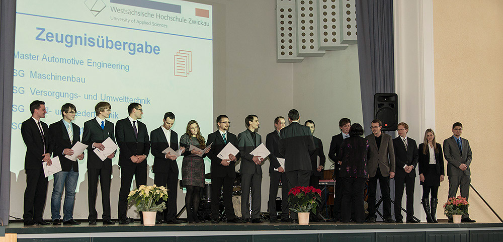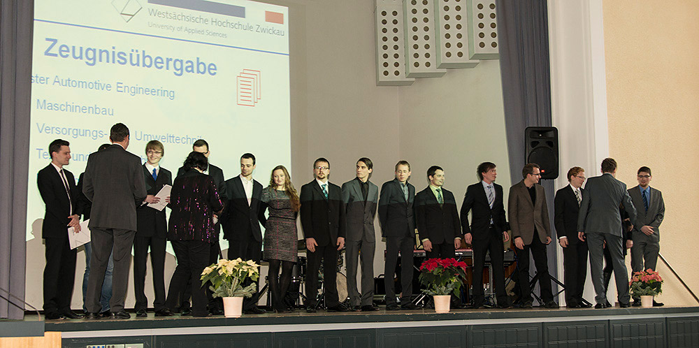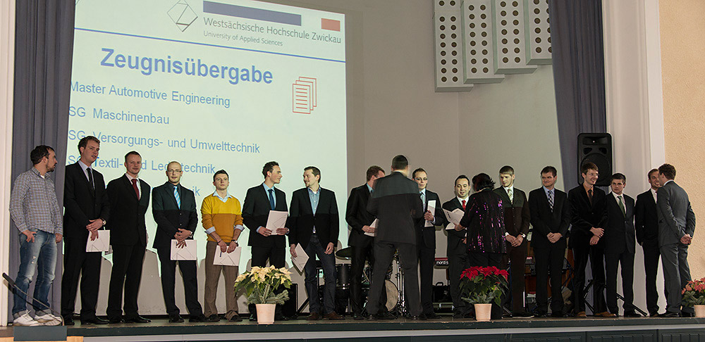Am 14.12.2012 fand ab 14.00 Uhr in der Aula auf dem Campusgelände die alljährliche feierliche Exmatrikulation der Absolventen der beiden Fakultäten Kraftfahrzeugtechnik und Automobil- und Maschinenbau des Jahres 2012 statt. Von 266 eingeladenen Absolventen nahmen ca.210 mit Eltern, Geschwistern bzw. Freunden teil.
