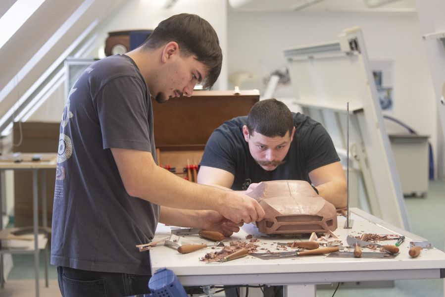 Mithilfe generativer KI wurden Designansätze visualisiert und weiterentwickelt. Anschließend entstanden in Handarbeit Fahrzeugmodelle aus Clay (Industrie-Plastilin), ergänzt durch 3D-gedruckte Komponenten mittels modernster Rapid-Prototyping-Technologie.