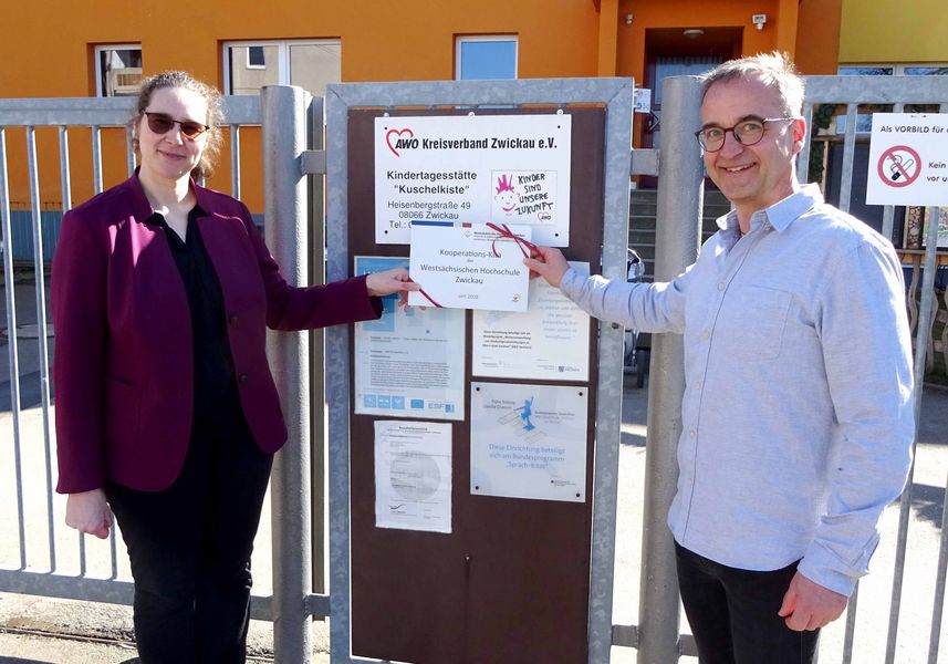 Die Arbeiterwohlfahrt (AWO), Kreisverband Zwickau, die Westsächsische Hochschule Zwickau, das Studentenwerk Chemnitz-Zwickau und die Stadt Zwickau kooperieren weiterhin, um die Vereinbarkeit von Familie und Studium weiter zu verbessern. Eine entsprechende Vereinbarung wurde am heutigen Dienstag in der Kita "Kuschelkiste" im Stadtteil Eckersbach unterzeichnet. In der Einrichtung der AWO, die sich in der Nähe des Hochschulcampus und des Studentenwohnheims in diesem Stadtteil befindet, werden sogenannte Belegplätze für Hochschulangehörige vorgehalten.