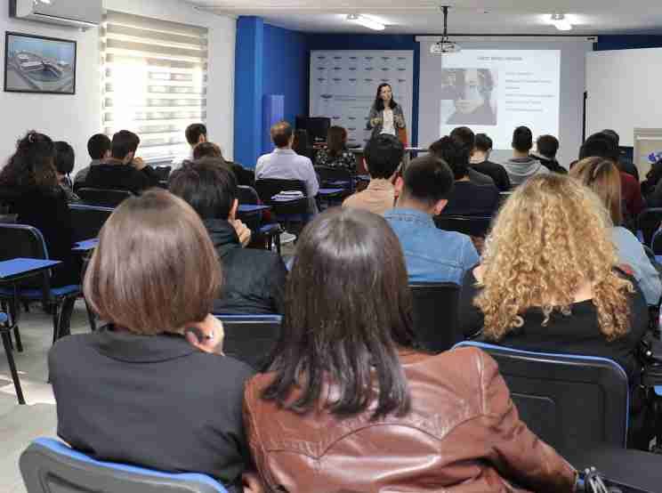 Adriana Slavcheva (stehend) stellte in Georgien die Möglichkeiten eines Studiums an der WHZ vor. | Quelle: IBSU