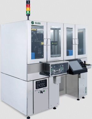 Der SÜSS MicroTec UV-Belichter MA150 ist ein automatischer UV-Belichter für Lithographieprozesse in Forschung und Entwicklung. Das Abbildung zeigt die aktuelle Variante des Belichtungssystems. In unserem Labor wird eine ältere Version des Gerätes eingesetzt.