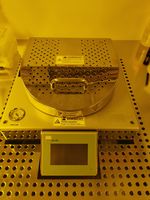 Das "Compact Nanoimprint Tool" der Firma NIL Technology ist ein einfach zu bedienendes und sehr zuverlässiges Werkzeug zur Herstellung nanostrukturierter Proben. Mit dieser kompakten Anlage sind der Nanoimprint von ebenen und zerbrechlichen Oberflächen, zum Beispiel Halbleitern, ebenso wie die Oberflächenstrukturierung von Metallen und Isolatoren möglich. Zudem ist dieses Verfahren wesentlich schneller als beispielsweise die Elektronenstrahl Lithographie. Der Stempel hat einen Durchmesser von ca. 100 mm.