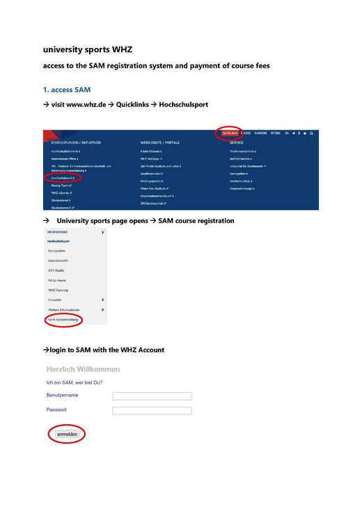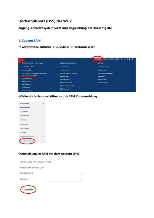 Schritte zur Anmeldung im SAM und Bezahlung Kursentgelt