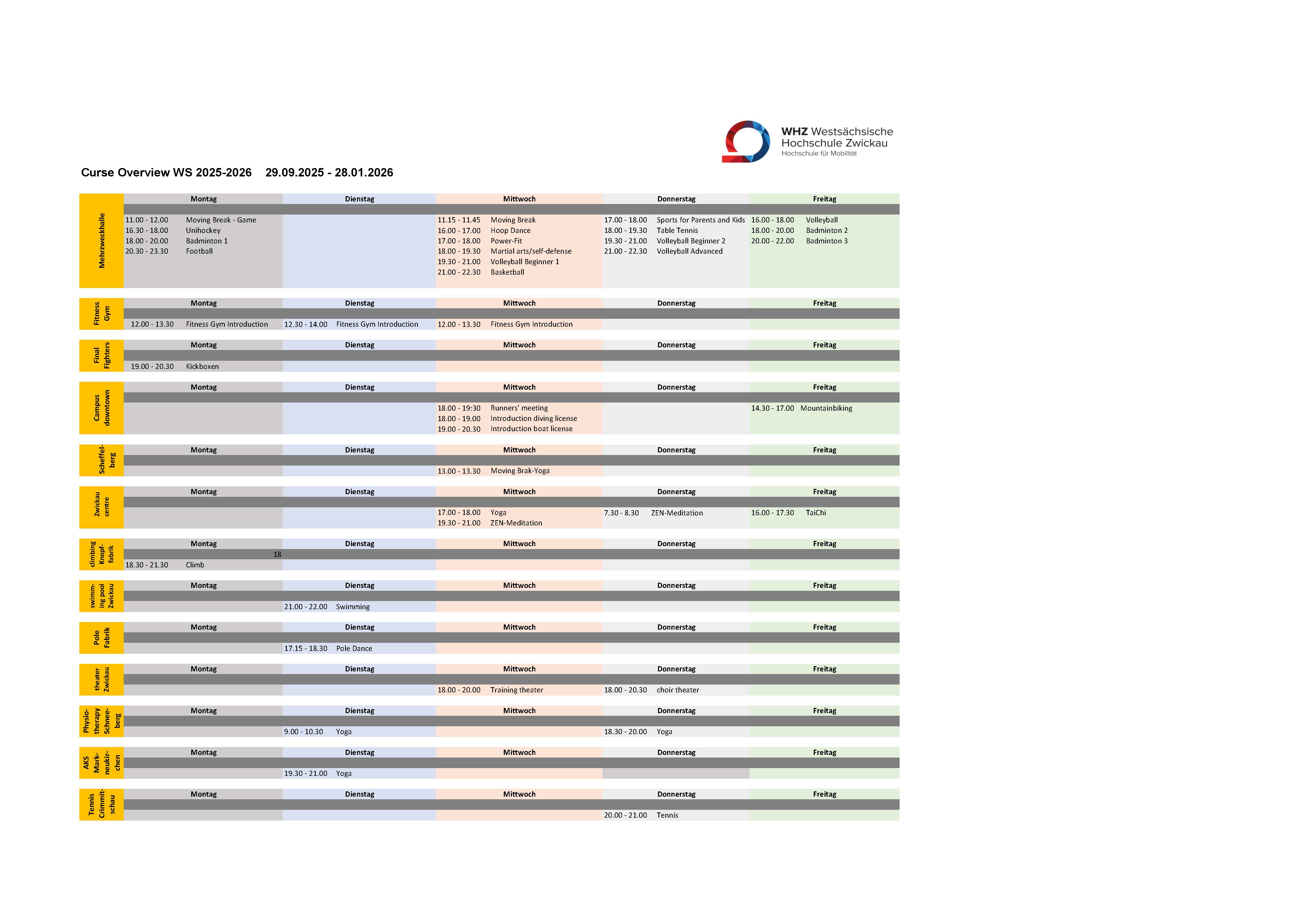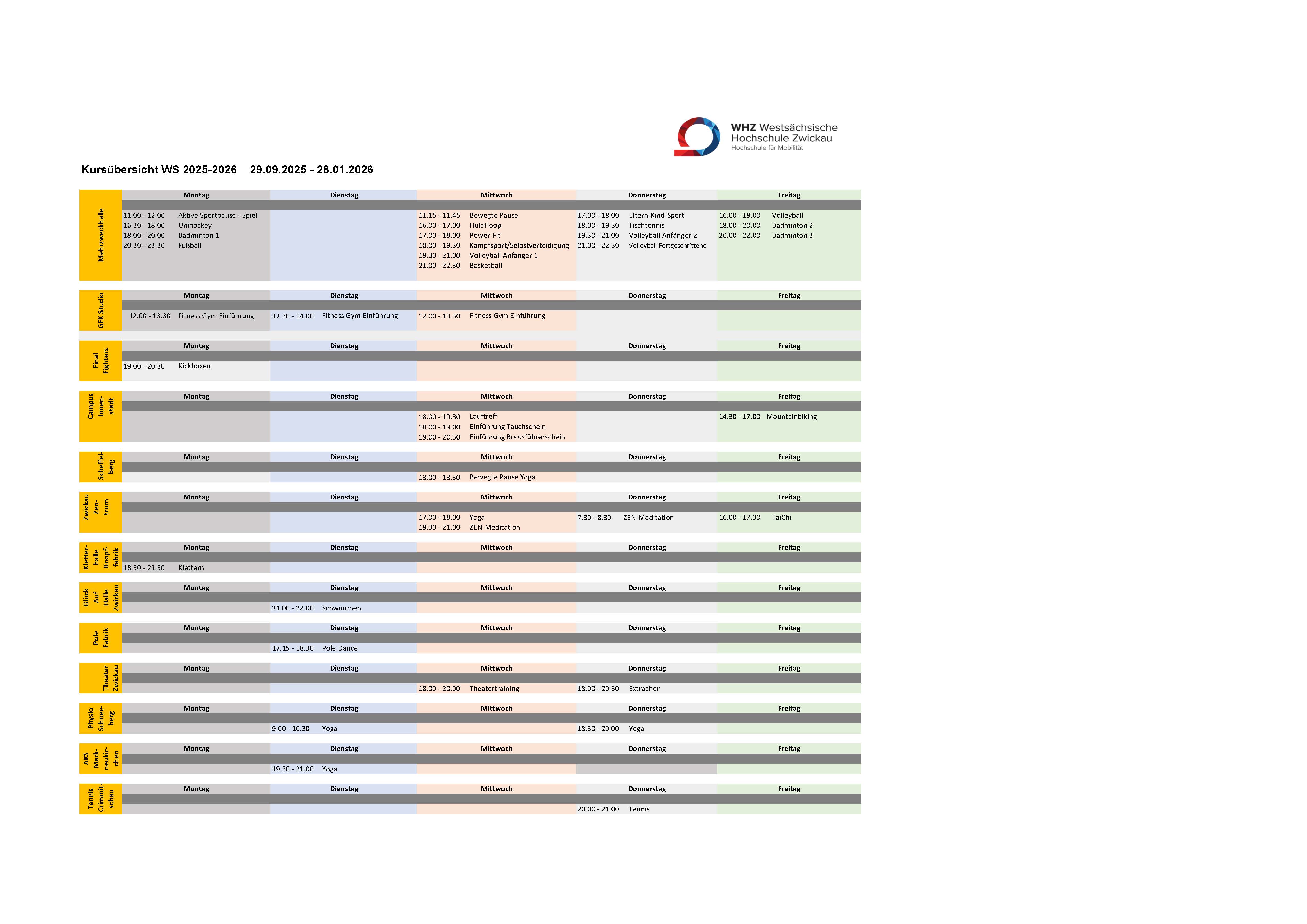Plan Wintersemester 2025-2026