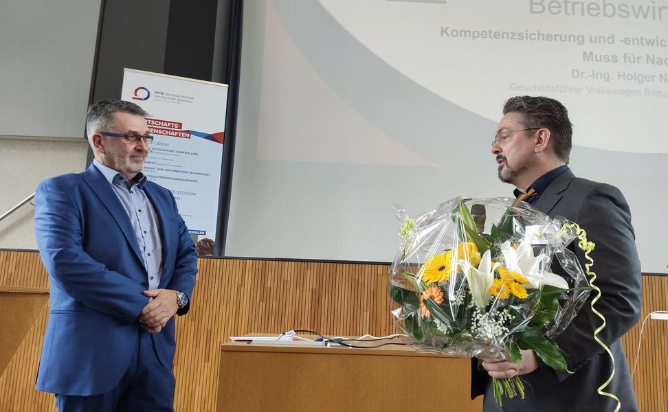 Im ersten Vortrag des Tages sprach Prof. Dr. Björn Baltzer von der Technischen Hochschule Würzburg-Schweinfurt über die „Wertschöpfungsrechnung als Instrument des Nachhaltigkeitscontrollings“. Er erläuterte die Konzeption und praktische Anwendung dieses Ansatzes, der Unternehmen hilft, ihre Nachhaltigkeitsziele wirksam zu überwachen und zu steuern. Anschließend folgte Dipl.-Ing. Jürgen Schleier, Geschäftsführer der Wasserwerke Zwickau GmbH, mit seinem Vortrag „Wasserkreislauf global – regional – immer nachhaltig?“. Schleier gab einen tiefen Einblick in die Herausforderungen und Lösungen im Umgang mit Wasserressourcen auf verschiedenen Ebenen. Nach der Mittagspause richtete Prof. Dr.-Ing. Stephan Kassel, Rektor der WHZ, ein Grußwort an die Anwesenden. Prof. Kassel betonte die Bedeutung der interdisziplinären Zusammenarbeit und den Beitrag der Hochschule zur nachhaltigen Entwicklung. Ein Höhepunkt des Forums war die anschließende feierliche Bestellung von Dr.-Ing. Holger Naduschewski zum Honorarprofessor für Prozess- und Kompetenzmanagement. Prof. Dr. Naduschewski, Geschäftsführer der Volkswagen Bildungsinstitut GmbH, hielt im Anschluss einen Vortrag über